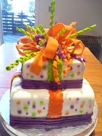 It took me three days to get this whole thing together, but it wasn't the most challenging cake I've ever made. I had to allow extra time for the detail items to dry (like the bow and curls). If you're familiar with fondant, this kind of thing is a breeze. If you're not, it might take you a little longer, but it's not that hard to do!